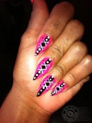 ately we have been seeing a lot of women sporting extremely pointy nails. Stars like Beyoncé, Rihanna and Fergie have been spotted with this new trend. Not only are these nails pointy, but some of them are super embellished either with color or added trinkets such as rhinestones or flowers or other items. The pointy shaped nails have been seen on natural nails as well as acrylics. This nail trend is quickly taking over. Views & Clues