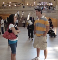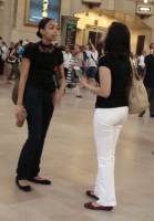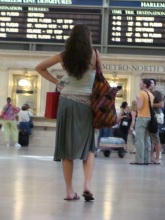 For women, cool, flowing sundresses that go from day to night are a must, paired with sandals or flip-flops (they're everywhere, and quite fashionable). Remember to perch sunglasses on your head at all times for a casual touch. Loose-fitting camouflage and khaki separates are also popular for both men and women, as comfort and functionality make complete sense for a New York summer on the go. Pack an extra shirt or accessory to change it up for later. MyCloset.com also spotted many women showing off white jeans, dressed up with flowing bright, colorful tops that stand out in a crowd. As we all know, New York City has international acclaim for starting fashion trends and for encouraging unique style. And Grand Central Terminal, the spectacular landmark built in the Beaux Arts style, is one of New York's leading outposts for fun viewing of today's leading looks. Stay tuned for more on New York...... |