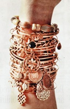 Boho chic, or gypsy style, or whatever you call it, multiplying and stacking jewelry is the latest fashion trend. You can take a plain jeans and t-shirt to a totally new level by simply adding a armful of a fun mixture of bracelets and/or bangles. As a matter of fact the more diversity, the better! Add a few statement rings, or knuckle rings and are a instantly Boho chic! Don't be afraid to try any number of combinations. That's what makes this trend so much fun. You can mix pearls with bangles or beads, leather with gold or whatever you fancy. You can create totally different looks each and every time you go out by wearing different combinations. You can create a theme to go with a particular outfit, such as pearls and black or just go crazy and wear every bracelet in your jewelry box at once. With this trend, truly anything goes!