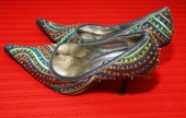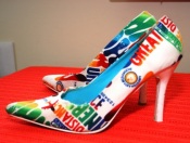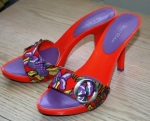 We cannot overlook her wonderfully colorful shoes. The bright graphic printed pumps are exceptional. The colors pop against the white background and are standouts for our Fashionistas.