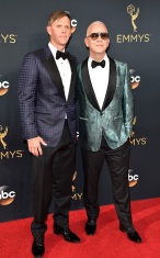 Reds, yellows, blues, greens and metallic's mixed with classic black and white at the Emmy's.