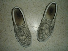 In his basement bed chamber before a black and white mural by Jack Greer of skulls, the eyes of Souxsie Sue, and a goth Virgin, Nicol’s unfazed. (He’s a Scorpio.) Don’t apply such outward laissez faire to his organizational skills. He knows EXACTLY what’s in his closet. And he is going to share...with MyCloset.com. |