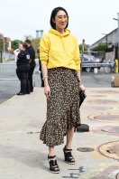 Yellow, the color of the sun, bananas, daffodils, canaries, corn and lemons. It’s the hue most associated with happiness, optimism, and amusement but also carries with it associations to envy, betrayal, wisdom, virtue, nobility, ambivalence and contradiction. It’s a color which holds different meanings to different people. Right now, it is one of the colors to wear on the red carpet, out on the town or just lounging around. With Christian Siriano, Carolina Herrera, Sies Marjan and Marc Jacobs sending yellow dresses, gowns, pants and blouses down the runway, it’s no wonder our favorite celebs are sporting the bright and vibrant hue. They have a variety of shades to choose from; lemon, marigold, mustard, cream, golden, Tuscan Sun, royal, goldenrod and cyber to name a few.