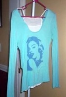 I have this black and white button up shirt that is straight out of the 80s. I thought it was pretty cool but I always get comments about how hidious it is. hehe...I never actually wore it and I'm pretty sure its in the next pile to be given away.