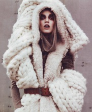 Winter white is an elegant color that looks good on everyone. It's warmer than stark white and can be worn after Labor Day. Usually winters are the time when we see dreary blacks and grey and browns. Winter whites upgrade your look to a more sophisticated style. Try a thick cable knit off-white sweater underneath a furry winter white coat and watch the looks of admiration come your way. This color stands out in a sea of dark coats and sweaters. We found a few garments to give you some ideas of how you can incorporate this wonderful color in your wardrobe.