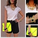 Want to liven up a plain outfit? Scared of bright colors? We have a solution. Why not try adding a pop of neon to your outfits. The splash of bright color instantly boosts the level of any outfit. For example why not try a pair of neon yellow shoes with a plain white shirt and jeans? Or dress up a solid black dress with a bright orange belt or clutch. There are so many ways to add a little neon to your wardrobe and every day outfits. Here are few touches of neon to inspire you.